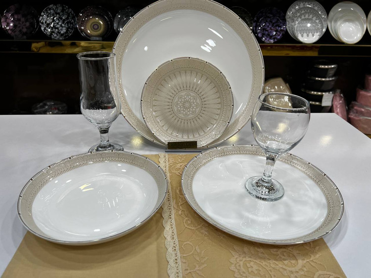 شامل : ۶عدد پلوخوری، ۶عدد خورشت خوری، ۶عدد پیش دستی، ۶عدد پیاله، ۱عدد دیس،۱عدد کاسه سالاد یا سوپ
