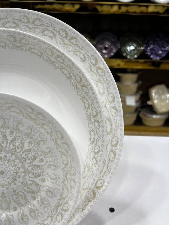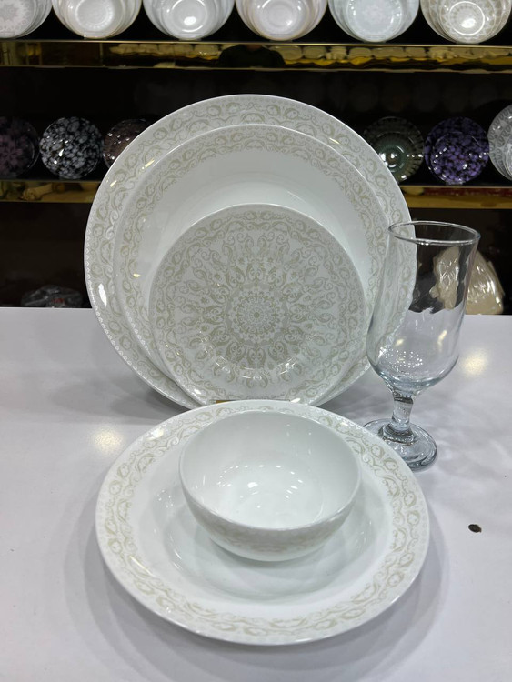 شامل: ۶عدد پلوخوری، ۶عدد خورشت خوری، ۶عدد پیش دستی، ۶عدد پیاله، ۱عدد دیس،۱عدد کاسه سالاد یا سوپ