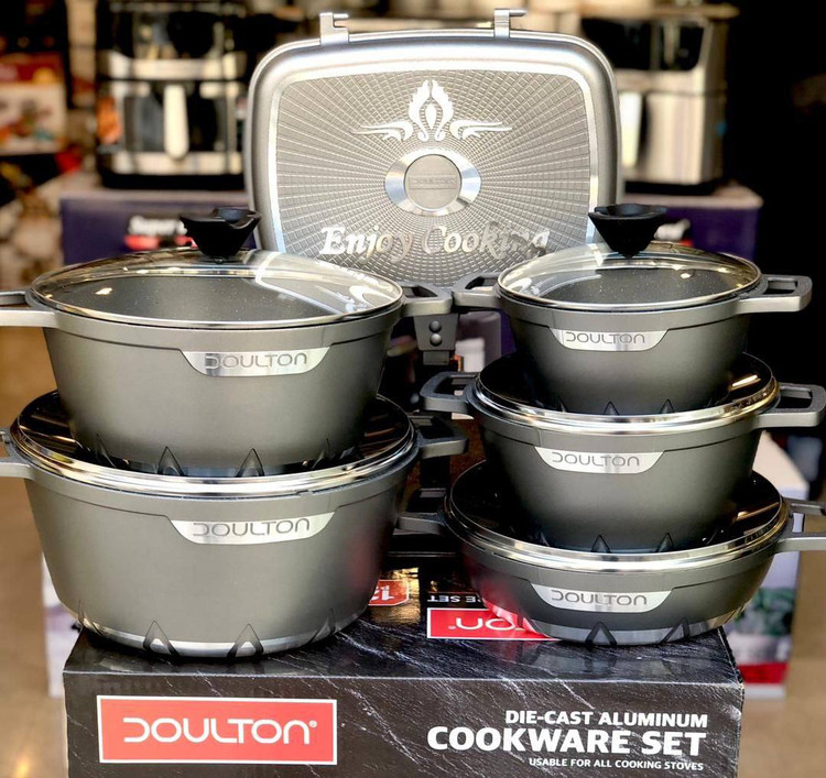 سرویس قابلمه چدن ۱۲ پارچه دالتون طرح فلورانس ،درب شیشه،شرکتی و ضمانت دار، در دو رنگ طوسی و مشکی