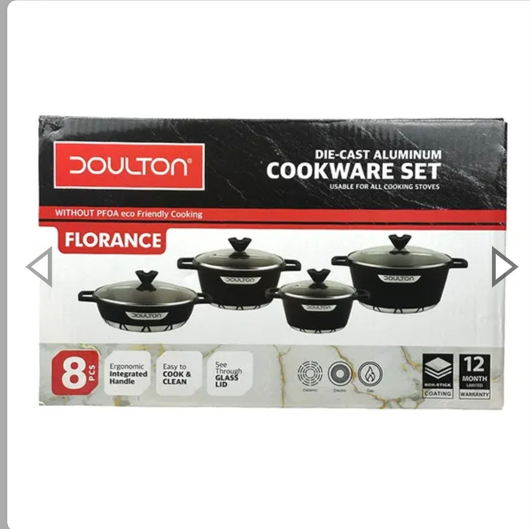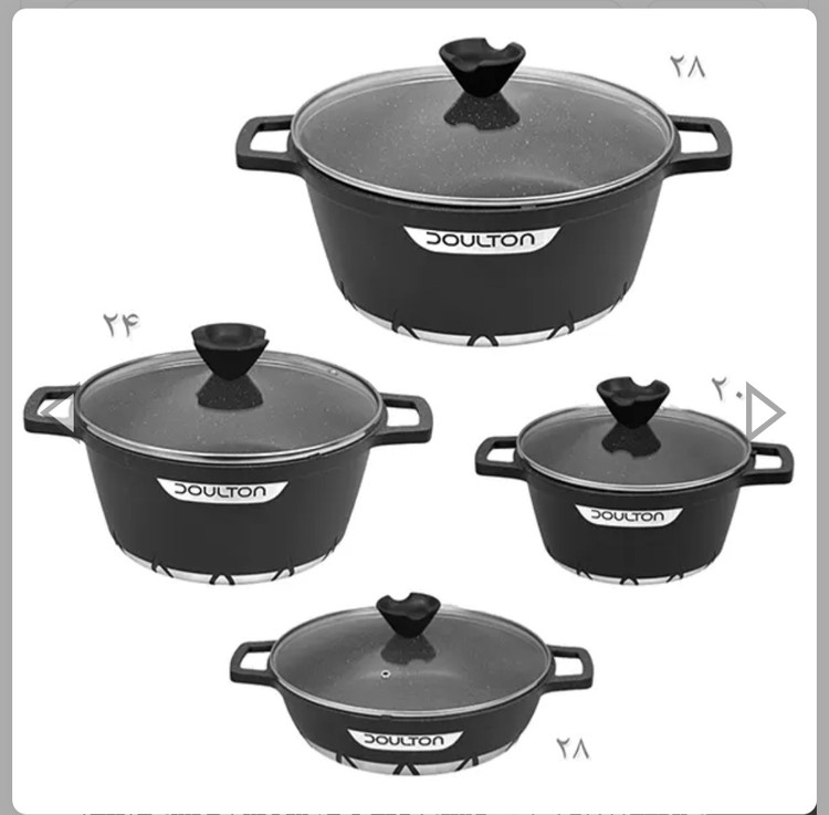 سرویس قابلمه ۸ پارچه دالتون سری B مدل فلورانس ، دارای قابلمه ۲۰ ۲۴ ۲۸ و تابه ۲۸ جنس چدن گرانیتی در دو رنگ طوسی و مشکی