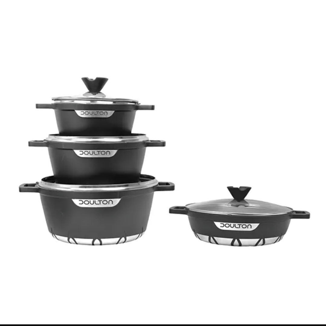 سرویس قابلمه ۸ پارچه دالتون سری B مدل فلورانس ، دارای قابلمه ۲۰ ۲۴ ۲۸ و تابه ۲۸ جنس چدن گرانیتی در دو رنگ طوسی و مشکی