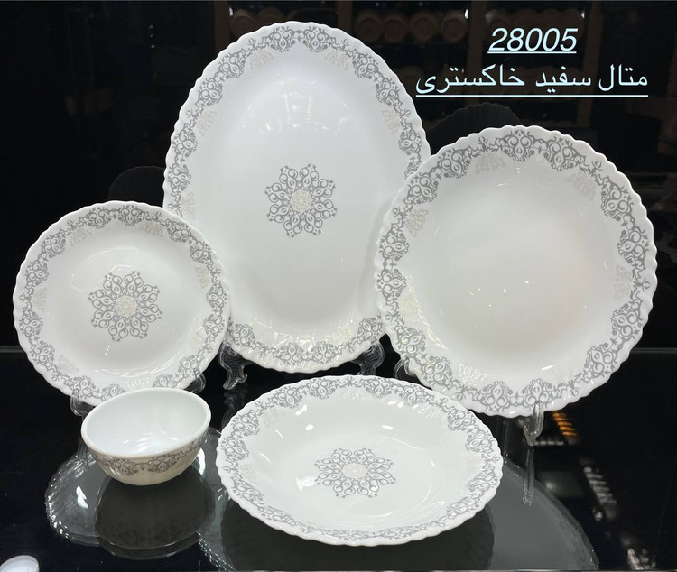 سرویس آرکوپال ۲۵ پارچه برند دینو مدل 28005 متال سفید خاکستری