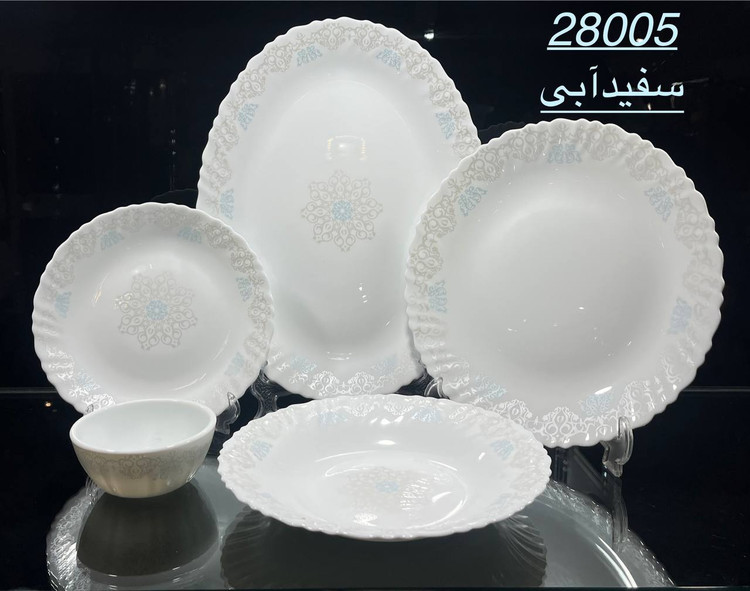 سرویس ذاخوری آرکوپال ۲۵ پارچه برند دینو با قابلیت استفاده در مایکروفر و ماشین ظرفشویی شامل ۶عدد پلوخوری ۶عدد خورشت خوری ۶عدد پیش دستی ۶عدد پیاله ۱عدد دیس میباشد