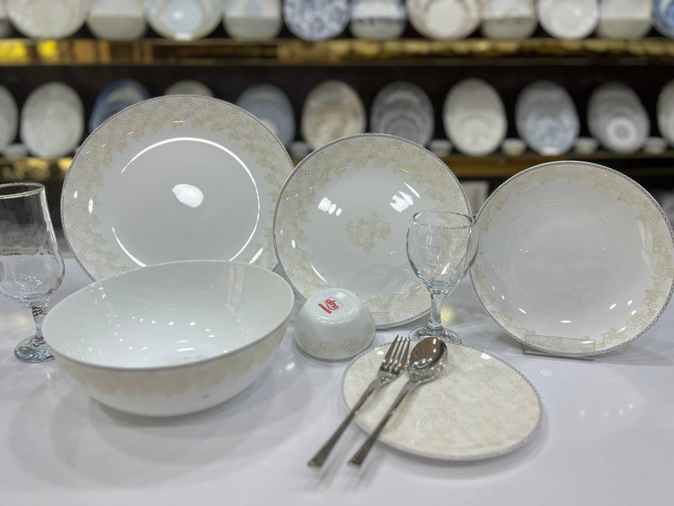 سرویس آرکوپال ۲۶ پارچه مقصود برند دینو قالب کلاسیک طرح برجسته کد ۱۳۱ .