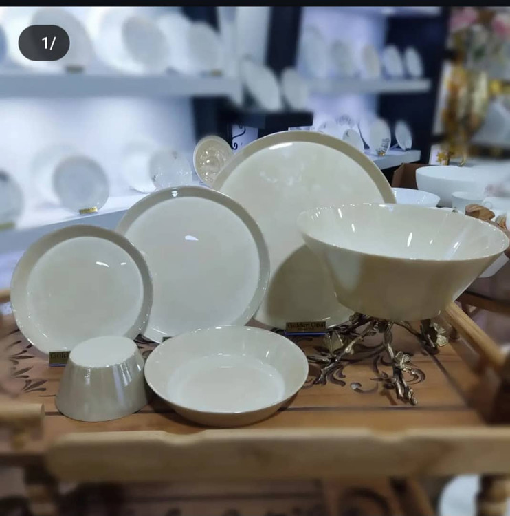 شامل: ۶عدد پلوخوری، ۶عدد خورشت خوری، ۶عدد پیش دستی، ۶عدد پیاله، ۱عدد دیس، ۱عدد کاسه سالاد یا سوپ