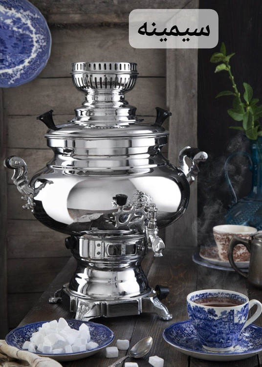 سماور عالی نسب مدل سیمینه ۵ لیتری جنس بدنه تمام برنجی پوشش نیکل کروم با ضمانت ۲۴ ماهه و خدمات پس از فروش