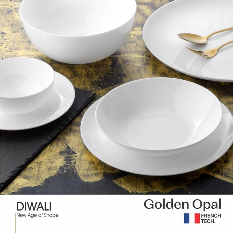 سرویس ۲۶ پارچه ارکوپال برند گلدن اوپال ، سفید ساده قالب گرد